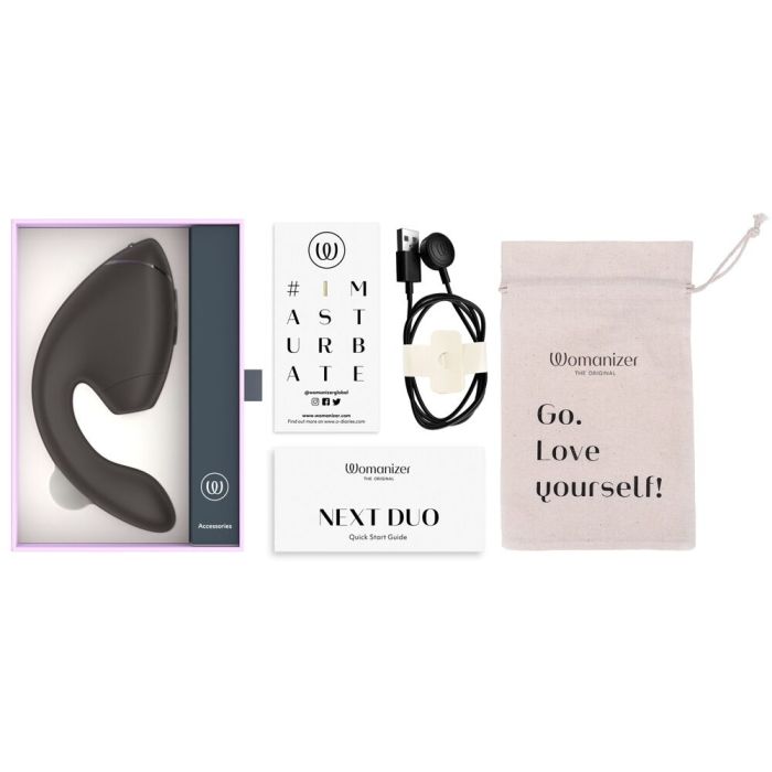 Dankzij de aparte motorbediening kun je de stimulatie onafhankelijk van elkaar regelen, terwijl de intuïtieve interface zorgt voor een moeiteloze bediening. Met Smart Silence start de Next Duo pas als hij in contact komt met je huid, wat zorgt voor een bijna geruisloze ervaring. En als je klaar bent, zorgt de afterglow-functie voor een ontspannen einde door het apparaat automatisch naar het laagste niveau te zetten. Deze elegante en trendy stimulator is volledig waterdicht, waardoor je hem ook in bad of onder de douche kunt gebruiken. Met een zijdezacht siliconen oppervlak en een ergonomisch ontwerp past hij perfect aan de vrouwelijke anatomie. Inclusief een USB-oplaadkabel, opbergtasje en twee vervangbare opzetstukken in verschillende maten, is de Womanizer Next Duo de perfecte metgezel voor intense, persoonlijke momenten van genot die je nog lang bijblijven!
