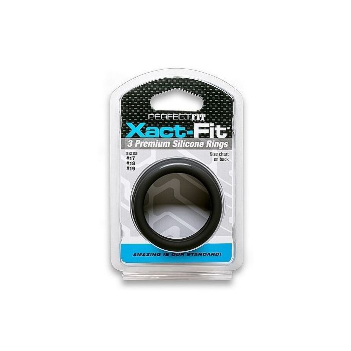 Ben jij een beginner als het gaat om cockringen? En wil jij het graag eens proberen, maar heb jij geen idee welke maat jij nodig bent? Dan zijn deze 3-pack Xact-Fit Kit cockringen perfect om uit te zoeken wat jouw maat is of om te combineren. De kit bevat 3 rekbare flexibele en stevige cockringen in 3 diverse maten. De cockringen hebben voldoende rek om ze snel, eenvoudig en comfortabel om de penis heen te schuiven maar zitten stevig genoeg om te genieten van een fijne afknelling. Met de Xact-Fit Kit cockringen heb jij gegarandeerd een stijvere erectie die de hele nacht voort duurt. Gebruik ze ook gewoon eens alle drie tegelijk voor een nog fijnere sensatie. Om het hele zaakje, om de penis en om de ballen. Na gebruik zijn ze snel en eenvoudig te reinigen onder de warme kraan met een milde zeep.