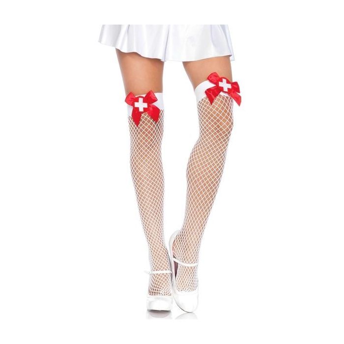 Deze kousen maken ieder lingerie setje of zusters kostuum een stuk spannender. De Zusters Net Kousen - Wit van het merk LegAvenue zijn gemaakt van zacht netstof met een hoge rekbaarheid voor een perfecte pasvorm. Bovenaan de kousen zijn brede hold up banden gemaakt waar je ook de bandjes van een sexy jarretel aan kunt bevestigen. Op de banden zijn rode strikken met een zusters badge aangebracht.
