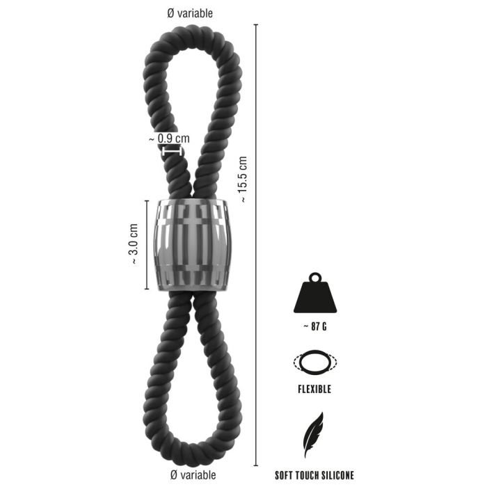 De dubbele lus van rekbare siliconen is ontworpen om zich aan te passen aan de anatomie van de gebruiker, waardoor een optimale pasvorm en een erectiebevorderend effect worden gegarandeerd. Door de strap om de penis en testikels te dragen, ervaart men een spannende grip die de sensatie tijdens het gebruik aanzienlijk verhoogt. Dit product is perfect voor diegenen die hun seksuele ervaringen willen intensiveren en de grenzen van genot willen verkennen. Met de Heavy Rope Cock Strap staat niets een langdurige en plezierige rit in de weg.