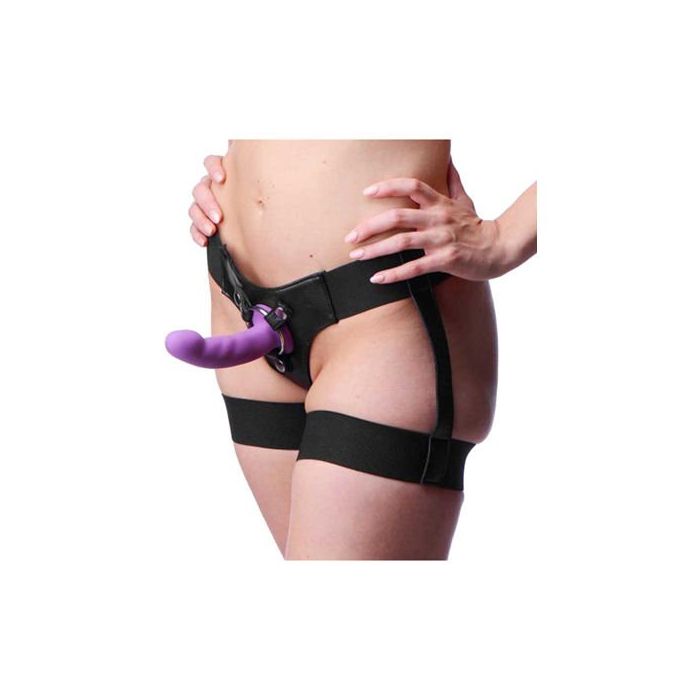 Met dit harnas uit de Strap U collectie, krijg je comfort en sex-appeal, allemaal in één systeem! Door de brede elastische banden is het harnas geschikt voor de meeste maten, en de aantrekkelijke string stijl biedt je veel bewegingsvrijheid. Je kunt zelf je favoriete dildo met platte onderkant bevestigen in één van de meegeleverde metalen O-ringen. Klik deze vast, en je bent klaar om te beginnen aan een penetratie avontuur.