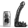 Hou jij van een spannende avond? Dan is deze zwarte dildo echt iets voor jou! Hij heeft een lange gladde schacht voor iedereen die niet van poespas houdt. Breng wat glijmiddel aan over zijn eikel en hij glijdt zo bij je naar binnen. Zijn gladde lange schacht zal jou compleet opvullen en jij kan zo diep als je wil gaan want de balzak met spikes zorgen voor de veiligheid. Maak deze grote stoere jongen voor en na elk gebruik goed schoon onder de kraan met een milde zeep en een toycleaner. Bij deze toy kan jij elk gewenst glijmiddel gebruiken.