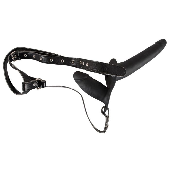Deze zwarte dubbele strapon geeft plezier voor twee! Laat je partner genieten terwijl je zelf ook geniet. De dubbele strapon heeft een eenvoudig verstelbare riem, zodat iedereen dez sextoy kan dragen. De dildo aan de binnenkant heeft een lengte van 8,5 cm en een diameter tot 3 cm. De dildo aan de buitenkant heeft een lengte van 15 cm en een diameter tot 3 cm,