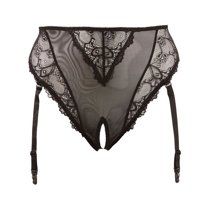 Ben jij op zoek naar een setje om je partner mee te verrassen? Dan is deze jarretel slip echt iets voor jou! Deze verleidelijke high waist slip heeft een open kruis waar je partner zeker wild van zal worden. De hoge taille en de strakke pasvorm van de slip dragen bij aan het accentueren van je ronde vormen en het verhullen van delen waar je misschien wat minder trots op bent. Het doorzichtige materiaal is afgewerkt met sierlijke borduursels en de slip is voorzien van verstelbare jarretelbandjes. Combineer deze set met elegante kousen en je kunt de verwarming wel uitzetten, want warm zullen jullie het zeker krijgen.