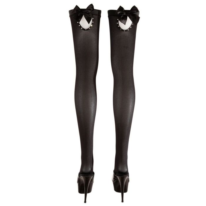 Zwarte hold up kousen met strik en strass