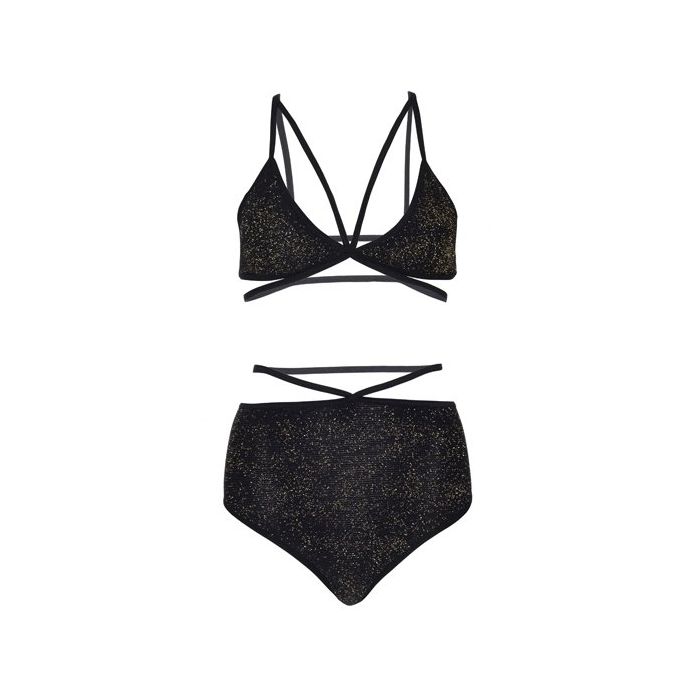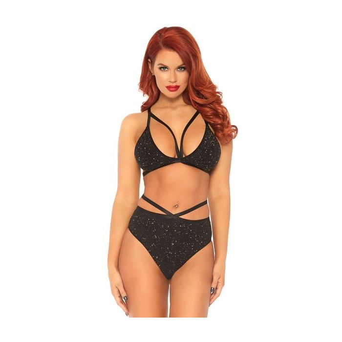 De Zwarte Lingerie Set met Glinster Effect is een sexy setje van Leg Avenue en is zeer geschikt voor de feestdagen. Deze tweedelige set bestaat uit een bh en een slip, beiden gemaakt van zacht en erekbaar materiaal, voorzien van metallic gouddraad voor een feestelijk effect.