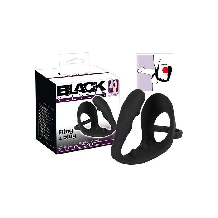 Zwarte Penisring met Anaalplug