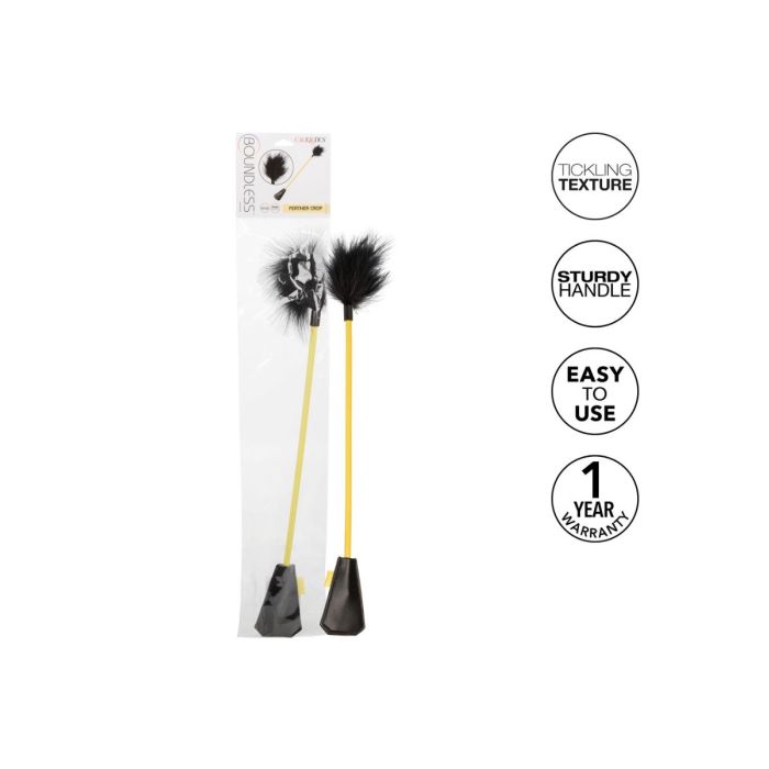 De Zweep Boundless Feather Crop van CalExotics is een dubbele BDSM-zweep gemaakt om te gebruiken als kunstleren zweep en kietelveer. Schakel moeiteloos tussen stout en aardig. Verhoog de zintuigen en vervaag de randen van plezier en pijn.